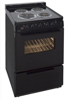 Premier 24" Black Free Standing Electric Range with four burners and leg levelersRead More